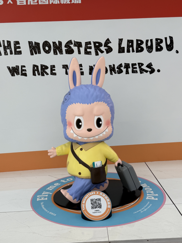 此外,在禁区离港层(L6)东大堂尊贵购物区,四座1.5米高的Labubu及Zimomo装置配以购物袋、行李箱等旅行主题配件,与Jaeger-LeCoultre、Longchamp、Rimowa、Cartier等品牌店铺相邻,其中两座更设有机场特别设计打卡墙,为旅客营造奇趣互动氛围,展出至11月30日。