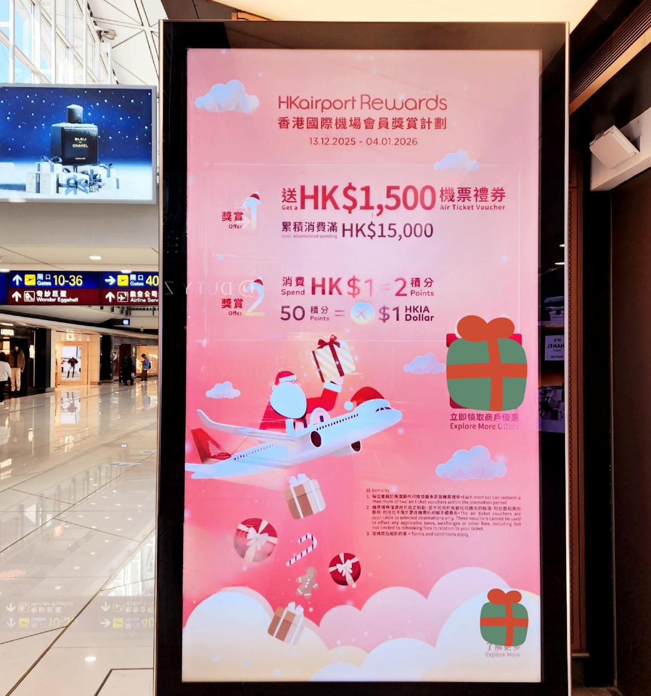 除了亮眼的圣诞布置,香港机场在会员优惠活动方面同样诚意满满。